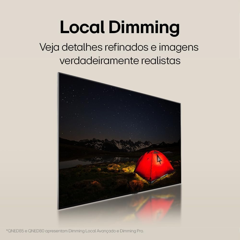 - Entusiastas de Cinema e Séries: A tecnologia QNED da LG (Quantum Dot + NanoCell) combinada com o Local Dimming garante cores vibrantes e pretos profundos, entregando a qualidade 4K UHD que você merece.